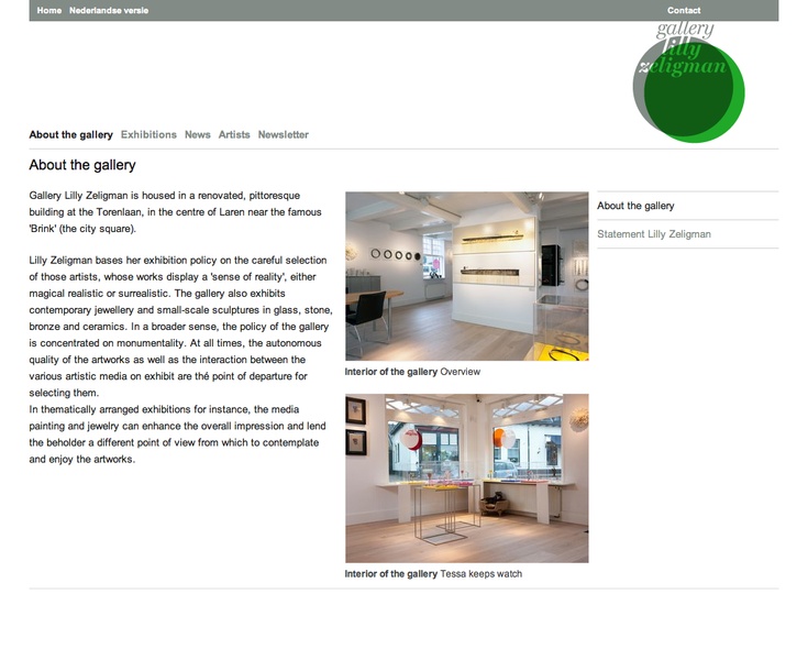 De hele site werd door Simons-design opnieuw vormgegeven en gestructureerd. De vormgeving sluit aan op de nieuwe visuele identiteit van Gallery Lilly Zeligman.